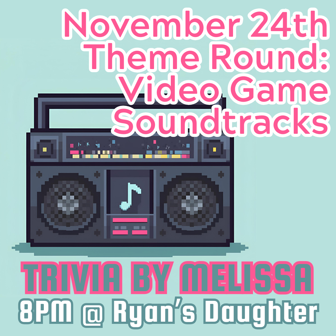 Nov 24 Theme Round: Video Games Soundtracks Monday, November 24, 2025 8:00 PM 10:00 PM Google Calendar ICS View Event →